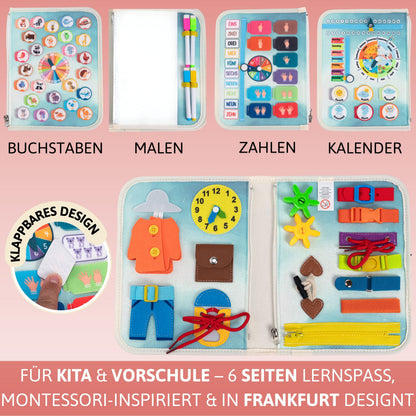 Dieses Busy Board ist besonders umfangreich - mit Aktivitäten auf 6 Seiten landet es nicht schnell in der Ecke, sondern wird zu einem langjährigen Begleiter.