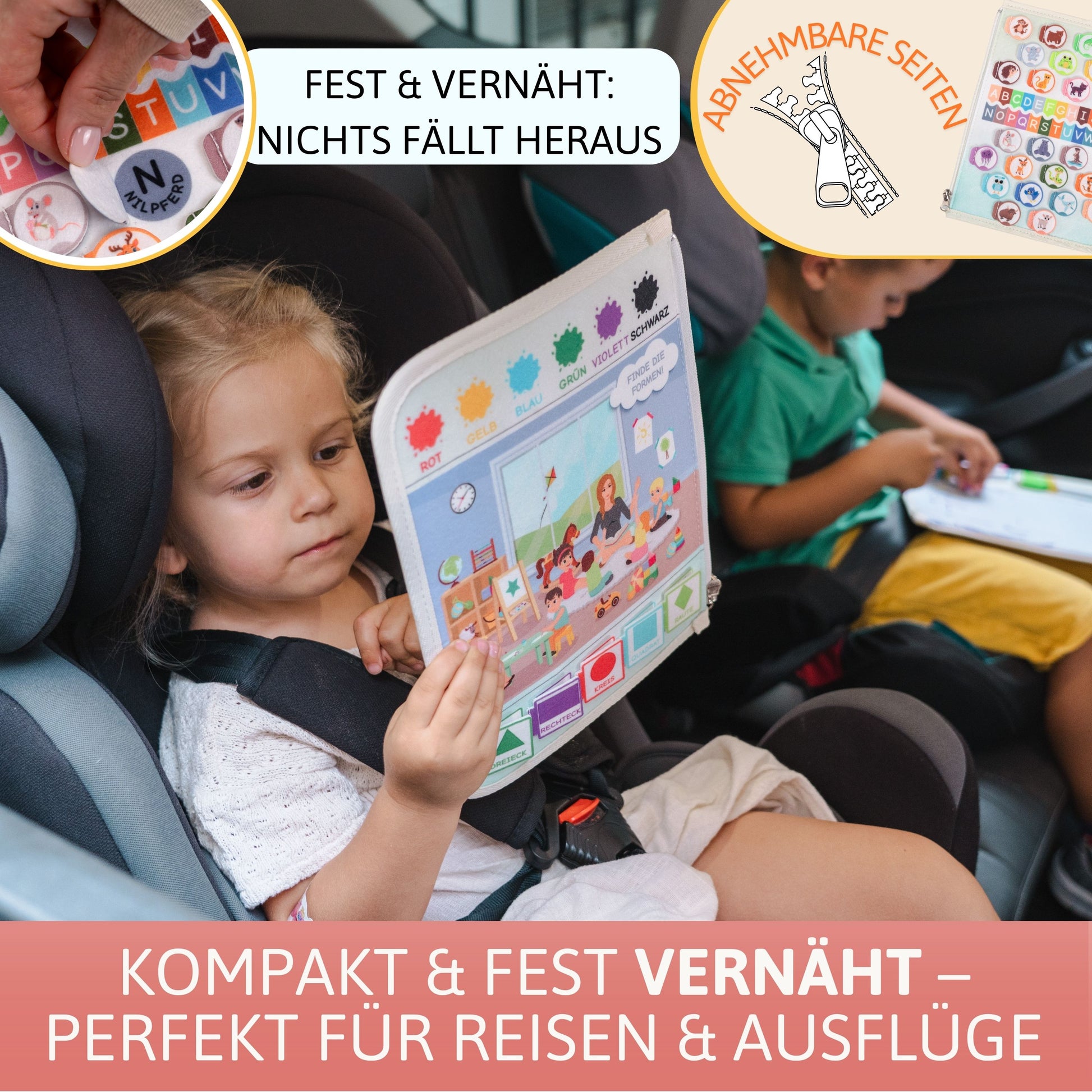 Die fest vernähte Version ist ideal für den Einsatz unterwegs. Da alle Teile sicher fixiert sind, gibt es keine Kleinteile, die verloren gehen könnten. Dein Kind kann sich voll und ganz auf das Spielen konzentrieren, was dieses Board besonders sicher und langlebig macht.