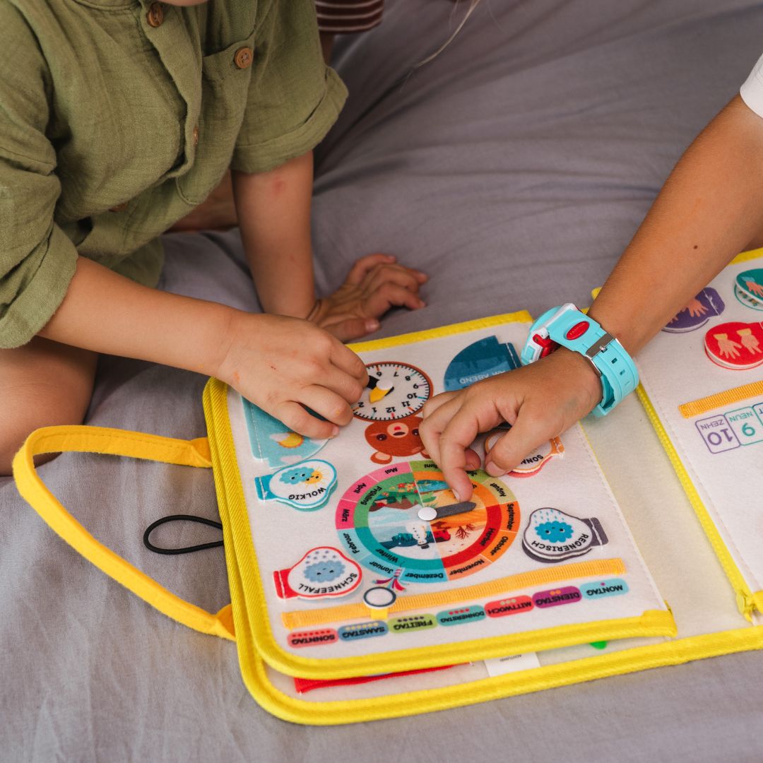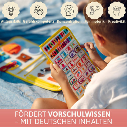 Kinder möchten die ganze Welt „begreifen“. Die 24 Aktivitäten in diesem Busy Board fördern diese natürliche Neugier. Die vielen Einzelteile laden kleine Entdecker dazu ein, die Motorik zu trainieren. Dein Kind lernt wichtige Fähigkeiten für das ganze Leben: Schleifen binden, Emotionen verstehen, Buchstaben erkennen und so viel mehr. Ganz nebenbei trainiert es Soft Skills wie Geduld, Selbstständigkeit, Selbstvertrauen und Fokus.