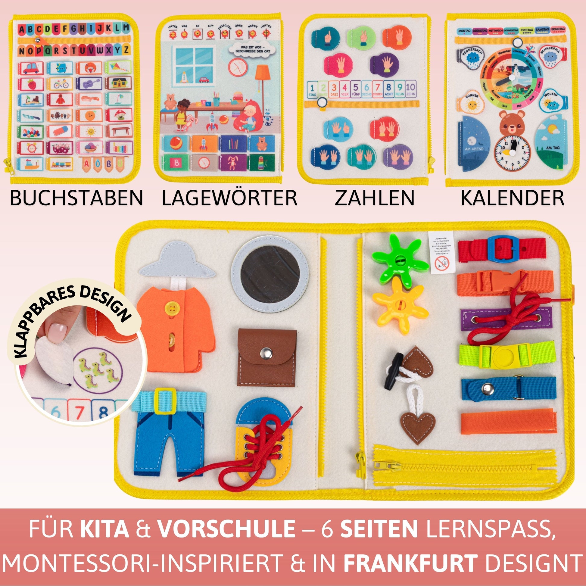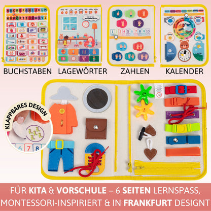 Dieses Busy Board ist besonders umfangreich - mit Aktivitäten auf 6 Seiten landet es nicht schnell in der Ecke, sondern wird zu einem langjährigen Begleiter.