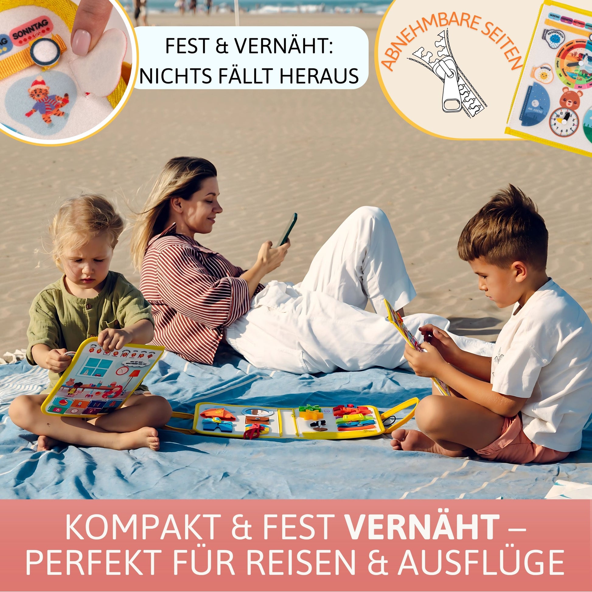 Die fest vernähte Version ist ideal für den Einsatz unterwegs. Da alle Teile sicher fixiert sind, gibt es keine Kleinteile, die verloren gehen könnten. Dein Kind kann sich voll und ganz auf das Spielen konzentrieren, was dieses Board besonders sicher und langlebig macht.