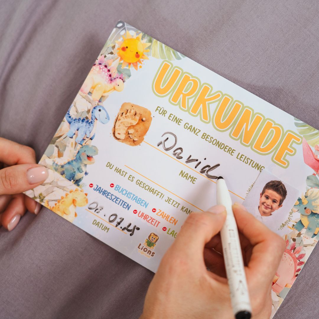 So fördert dieses Montessori-Spielzeug die Freude am selbstständigen Lernen. Du bekommst sogar eine Urkunde mitgeliefert, mit der Dein Sohn oder Deine Tochter den Lernfortschritt dokumentiert. Die Urkunde bekommt natürlich einen Ehrenplatz am Kühlschrank.