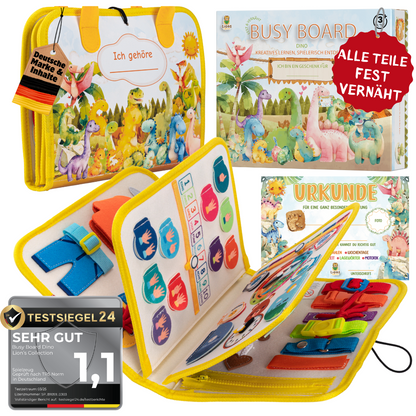 Wecke die Neugier deines kleinen Entdeckers mit diesem fesselnden Dino Busy Board. Jedes Element ist inspiriert von der prähistorischen Welt und fördert auf spielerische Weise die Feinmotorik und das logische Denken. Schenke deinem Kind ein sicheres und robustes Lernspielzeug, das die Fantasie anregt und es in eine aufregende Welt voller Dinosaurier entführt.