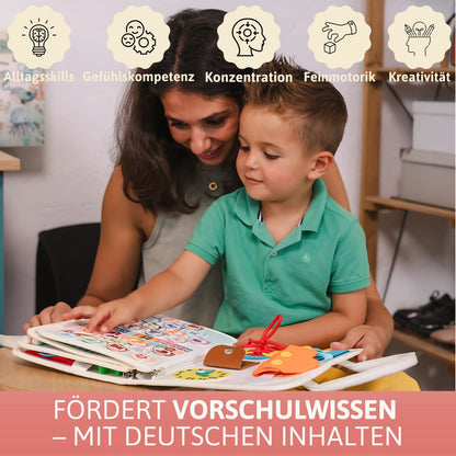 Dieses Busy Board ist besonders umfangreich - mit Aktivitäten auf 8 Seiten landet es nicht schnell in der Ecke, sondern wird zu einem langjährigen Begleiter.