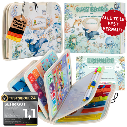 Tauche ein in die faszinierende Unterwasserwelt! Mit dem Busy Board Ozean entdeckt dein Kind die bunte Vielfalt des Meeres und trainiert dabei seine Feinmotorik. Als vielseitiges Lernspielzeug bietet es stundenlanges, leises und konzentriertes Spielvergnügen, das die Neugier und die Kreativität auf eine neue Ebene hebt.