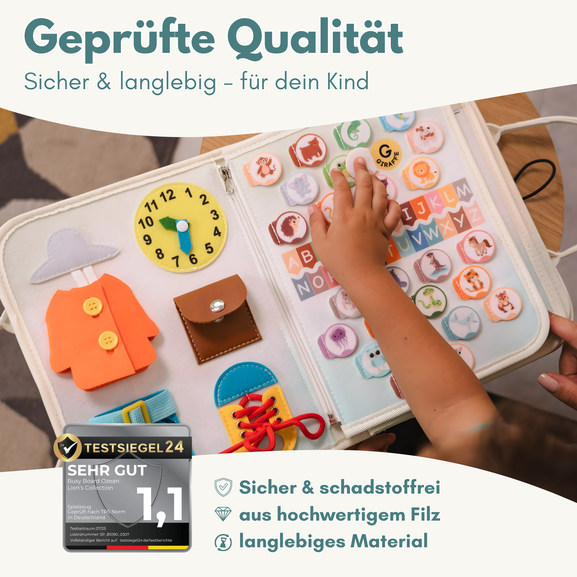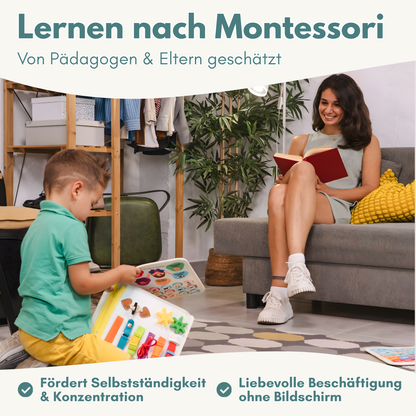 Dieses Busy Board bietet eine sinnvolle, ruhige BeschĂ€ftigung â ob zu Hause, unterwegs oder zwischendurch. Es fördert KreativitĂ€t, Feinmotorik und SelbststĂ€ndigkeit durch praktische Alltagsaufgaben â inspiriert von der Montessori-PĂ€dagogik.