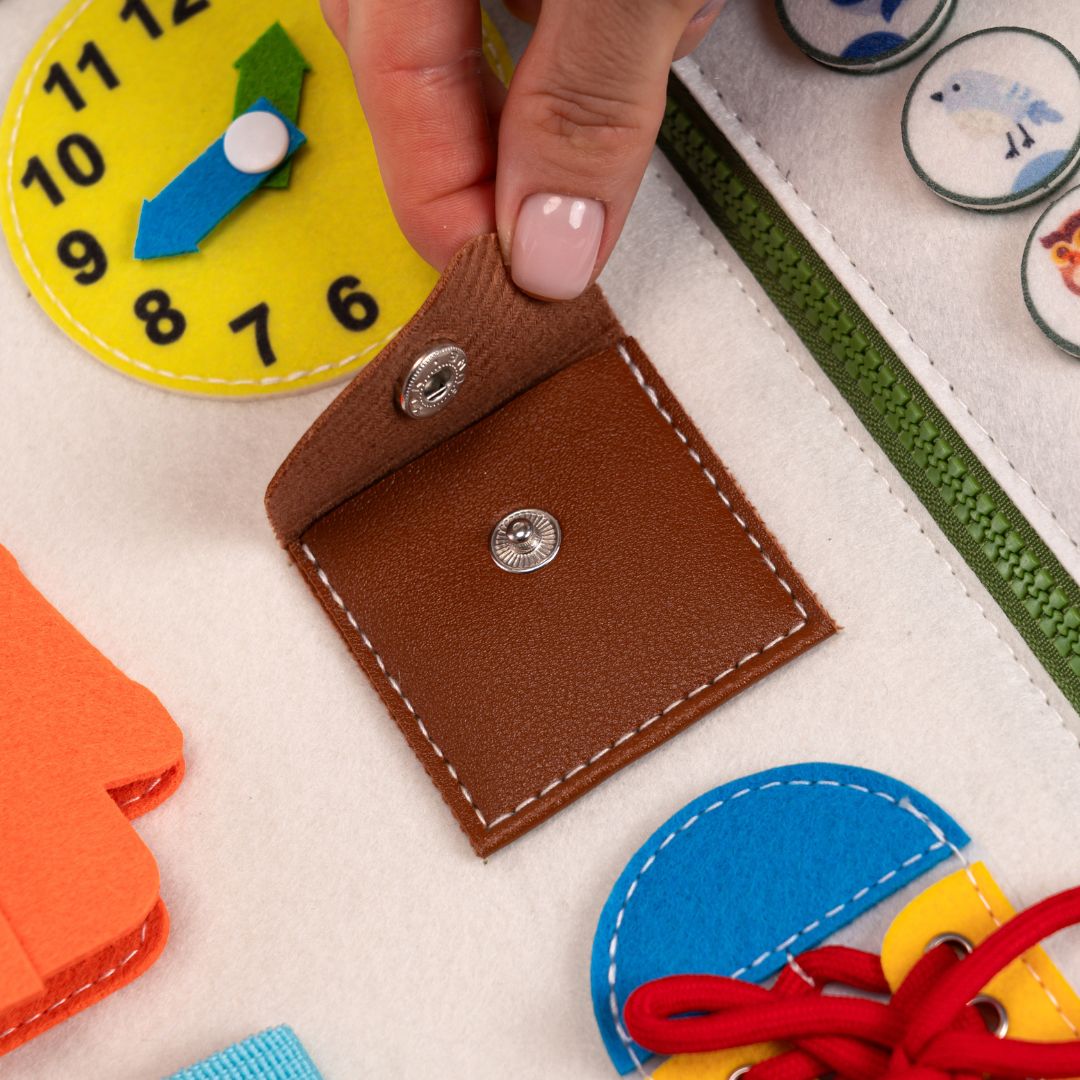 Die Klettverschluss-Version bietet dir maximale Flexibilität. Du kannst einzelne Elemente abnehmen, um sie separat zu bespielen, und sie jederzeit wieder neu anordnen. Das macht das Busy Board besonders anpassbar und perfekt für gemeinsame Entdeckungen mit deinem Kind.
