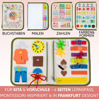 Dieses Busy Board ist besonders umfangreich - mit Aktivitäten auf 6 Seiten landet es nicht schnell in der Ecke, sondern wird zu einem langjährigen Begleiter.