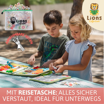 Die fest vernähte Version ist ideal für den Einsatz unterwegs. Da alle Teile sicher fixiert sind, gibt es keine Kleinteile, die verloren gehen könnten. Dein Kind kann sich voll und ganz auf das Spielen konzentrieren, was dieses Board besonders sicher und langlebig macht.