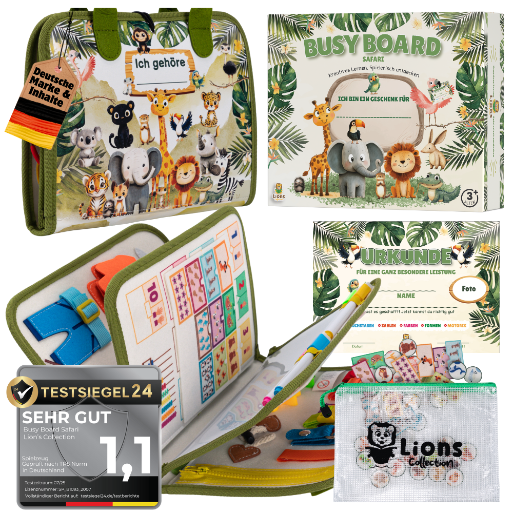 Lass dein Kind die Faszination der afrikanischen Savanne hautnah erleben. Das Busy Board Safari ist ein liebevoll gestaltetes Activity Board, das die motorischen Fähigkeiten deines Kindes durch abenteuerliche Herausforderungen stärkt. Ein sicheres und langlebiges Kleinkind-Spielzeug, das perfekt für kleine Abenteurer ist.